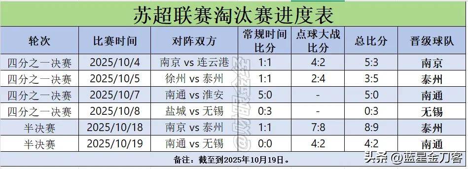 江苏城市足球联赛,江苏足球联赛,足球赛程,积分榜,城市足球队,业余足球,聚焦2025江苏城市足球联赛,提供实时赛程、积分榜、队伍信息、直播入口与报名指南,汇聚全省热爱足球的城市代表队,打造属于江苏人的足球狂欢!就在刚刚,苏超联赛第二场半决赛落下帷幕,比赛同样通过点球决出了胜负!在常规时间0-0打平后,南通队在主场经过点球大战以4:2击败了无锡队,与昨天已经晋级的泰州队一起,顺利晋级决赛。决赛将于11月1日19:35在南京奥体中心举行,届时两队都没有主场优势,将是一场公平的较量!