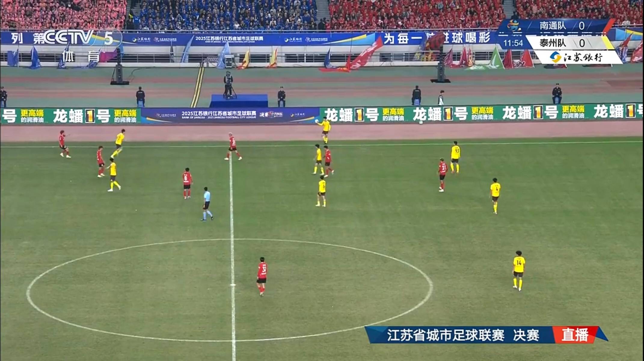 决赛当天,苏超赛场气氛如火如荼,现场大屏幕上显示了有62329名观众共同见证了这一历史性时刻,这一数字刷新了苏超联赛的观赛纪录!从比赛开始到结束,两队的对抗十分谨慎,场面一度陷入胶着状态。上半场,南通队占据控球优势,但泰州队坚守防线,双方都未能在上半场有所突破,0-0平局进入休息。