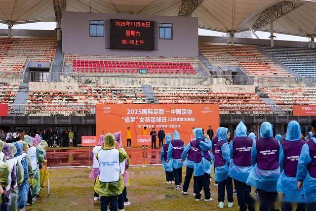 尽管活动期间细雨连绵却丝毫未影响现场的热情氛围苏超盐城队的唐锦、花志成、祁睿三名主力球员领衔与队友们分组带领女孩们开启了趣味足球游戏
