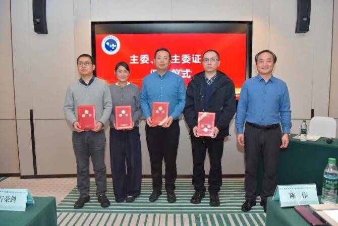 △江苏省医学会物理医学与康复医学分会前任主委、江苏省康复医学会康复教育专委会名誉主委、徐州市康复医学会副会长陈伟为亮主任颁发修复重建外科专委会主委聘书。