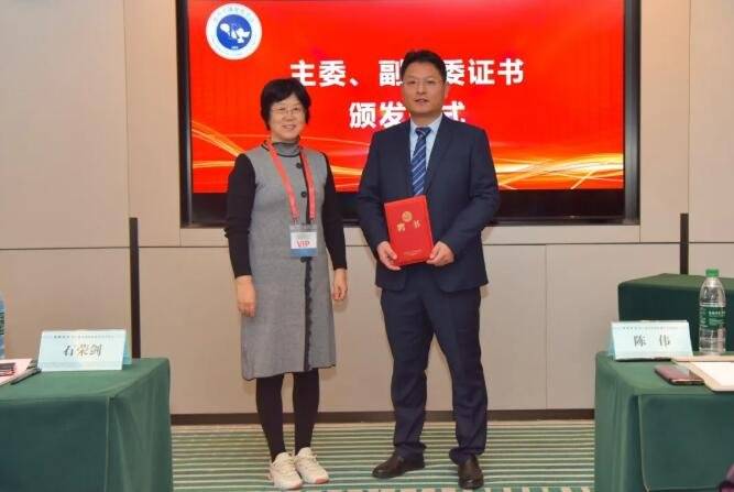 △徐州仁慈医院副院长、徐州市康复医学会修复重建外科专委会首任主委石荣剑为运动康复专委会副主任颁发聘书。