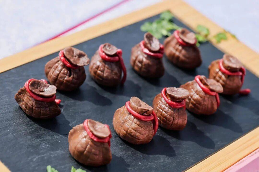 在宣城,厨师手起刀落,在食材上复刻“宣笔雕工79刀”,每一刀都带着千年宣笔的制作精髓。