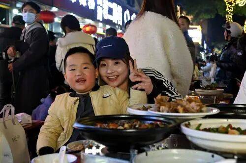 12月1日,游客在安徽省广德市迎春路一家饭店品尝炖锅。近期,广德“三件套”(炖锅、奶茶、桃酥)爆火网络,来自浙江、江苏等地的游客涌入这座安徽小城,上演跨省消费热潮。 中新社记者 张强 摄