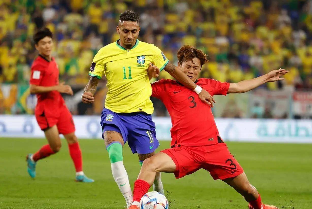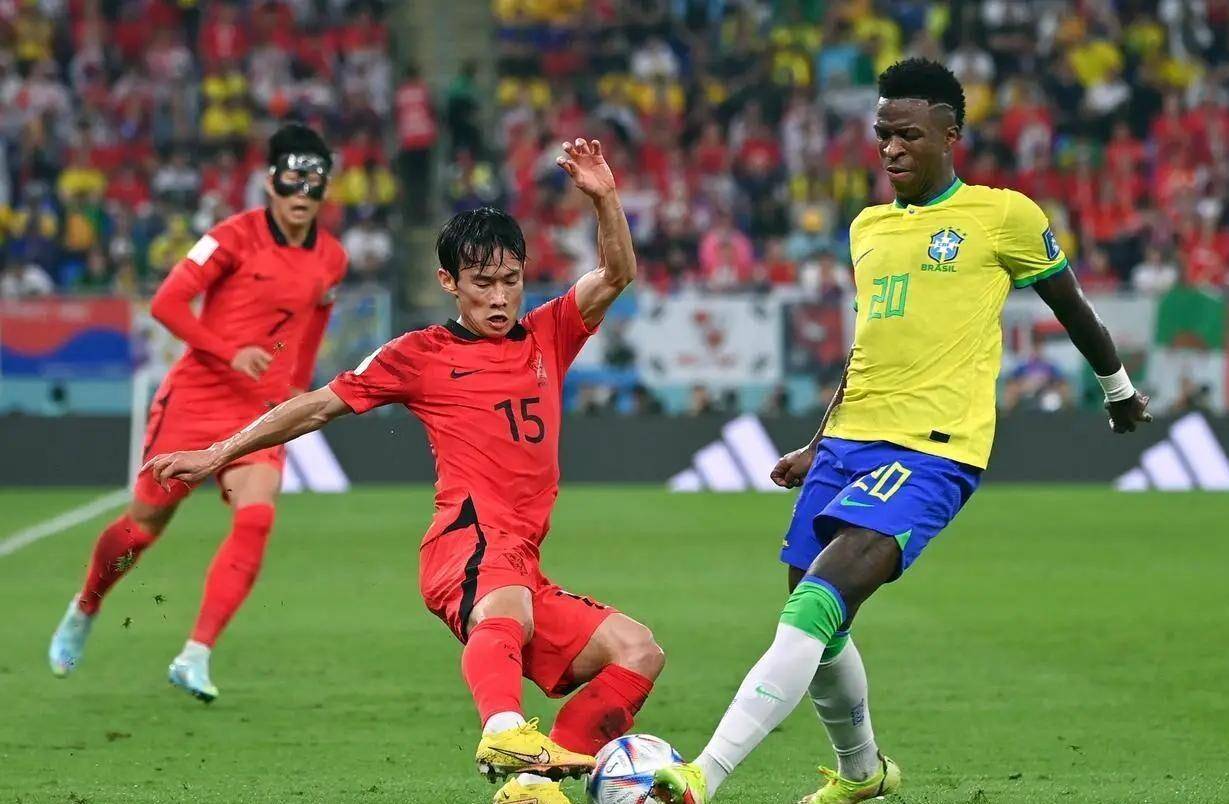 当巴西队轻松控制比赛节奏,利用场地宽度来回调动韩国防守时,韩国球员显得特别呆滞和被动。 他们可能在国内或者亚洲范围内算顶尖,但放到世界舞台上,差距就暴露无遗。