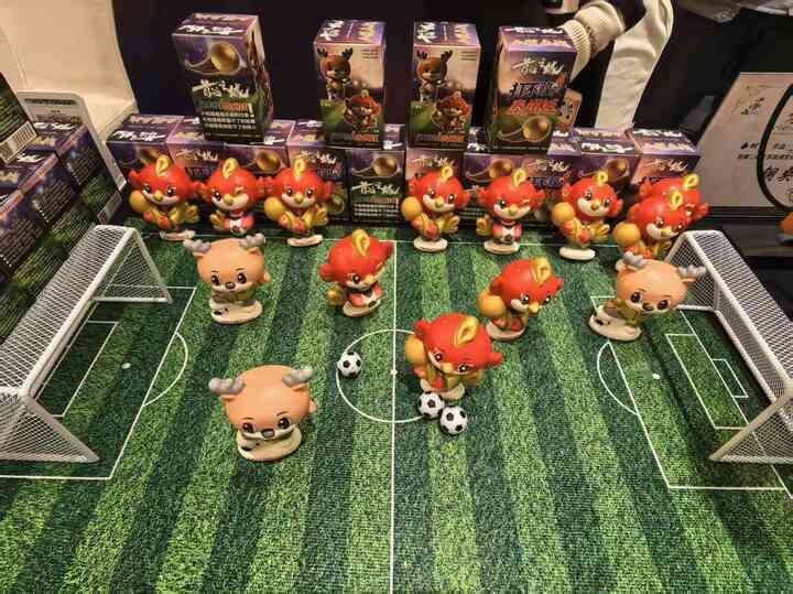 “这是我们新推出的苏超十三太保产品,将苏超元素融入到非遗中。”面对围满的市民,靖江泥哨文化创意有限公司负责人周红指着展台热情介绍。