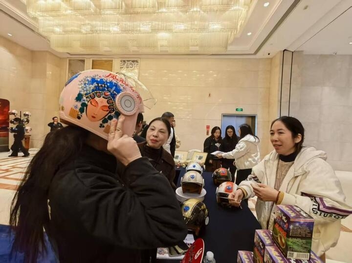 “苏超”系列文创产品,不仅好看好玩,还有实用的。现场,由泰州迪柯印刷科技有限公司带来的“冠军头盔”引来大家驻足瞧稀奇。头盔上印有凤冠造型、“苏超”泰州队队徽等图案,骑车戴上头盔,既安全又拉风。公司总经理沈友群介绍,这款头盔的面世,已成为企业开拓高端文创市场的标杆。“泰州队夺冠后,我们就希望将这份城市荣耀印刻在安全头盔上,让它能被看见、被传递。”