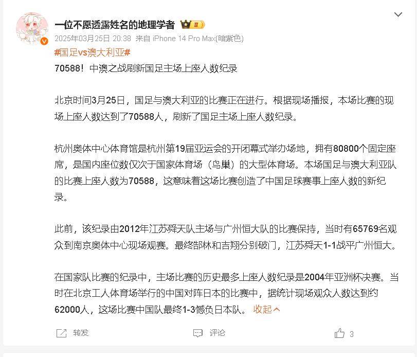 正如作者黄强所言,前几年人们还在抱怨中国足球无人关注,中超联赛和国足比赛无人问津。但2025年的情况却截然不同,国足与澳大利亚的比赛,创造了70588人的观赛纪录。为了这场比赛,球迷们不辞辛劳,有的坐了几天的火车,有的乘坐地铁,还有人开着豪车,甚至有人乘坐私人飞机。不仅是职业比赛,苏超、川超、贵州村超、赣超等民间赛事也吸引了数十万球迷前来观看。