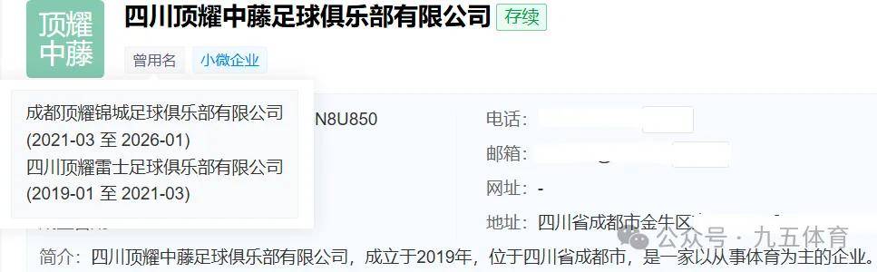 同时,该俱乐部更名为“四川顶耀中藤足球俱乐部”,贵州中藤为俱乐部第一大股东,也是控股股东。